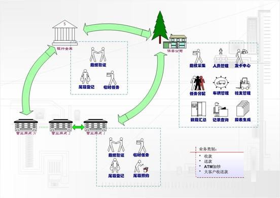 系统是以RFID射频技术、无线技术为依托而建立的补充现有银行出纳业务综合管理体系,将实现交接业务链信息的实时采集、随时读取,提供安全的身份认证、运钞过程动态监控、审计与监督管理,实现管理的现代化、自动化,确保业务安全、科学地进行,防止越权违规操作。